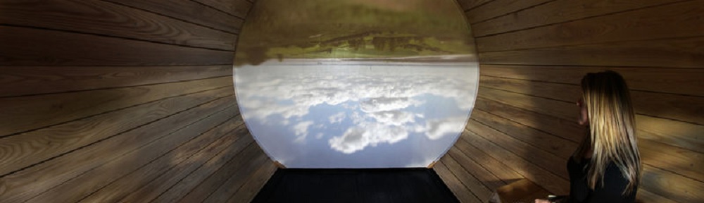 During the late 19th century camera obscuras became popular throughout the United States and Europe.  Central Park in New York City once held a gazebo-like building in the 1870’s operating the phenomena for the public.  In Irvine, California a large public park replaces what was once the U.S. Marine Corps. El Toro Air Station.  Through The Legacy Project six photographers wanted to capture the memory of this historically famous airbase.  These six photographers turned one of the fighter hangers into the world’s largest pinhole camera to display on fabric-film (a 3,045 sq ft photograph) the control tower and runways along with the San Juaquin Hills in the background.  The complete aperture exposure took about five to ten days.