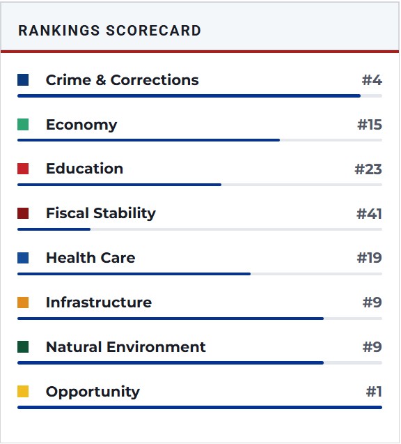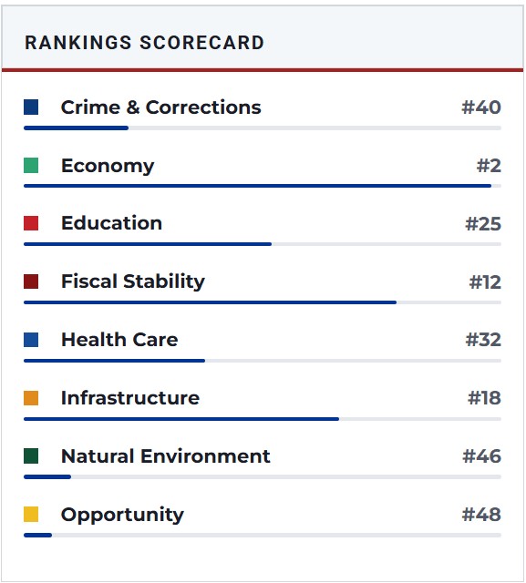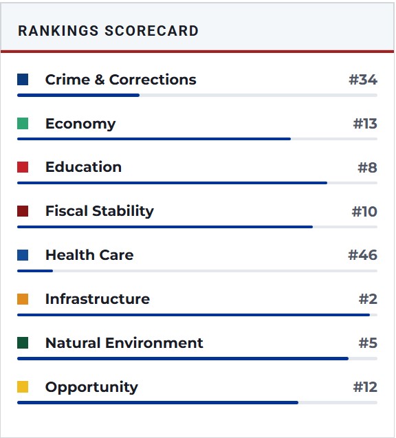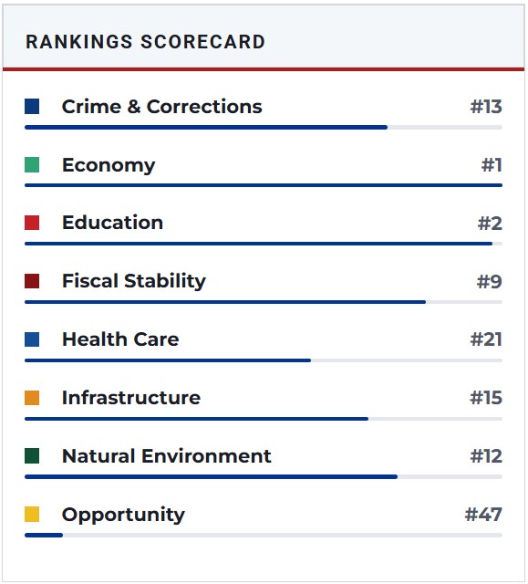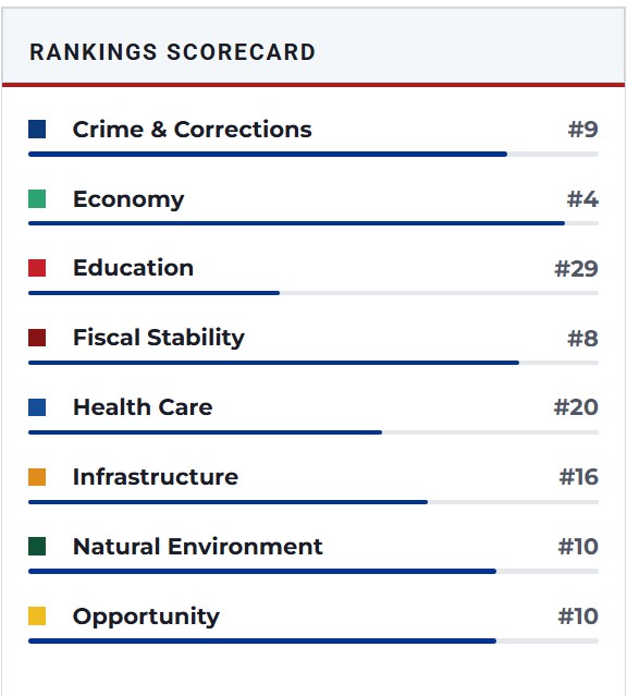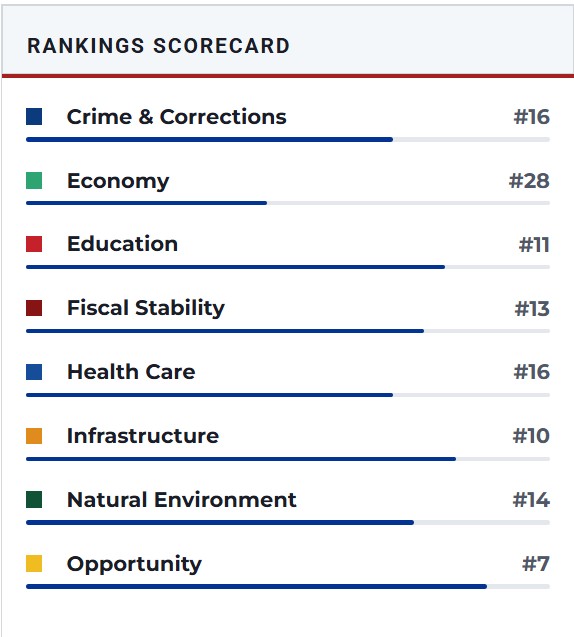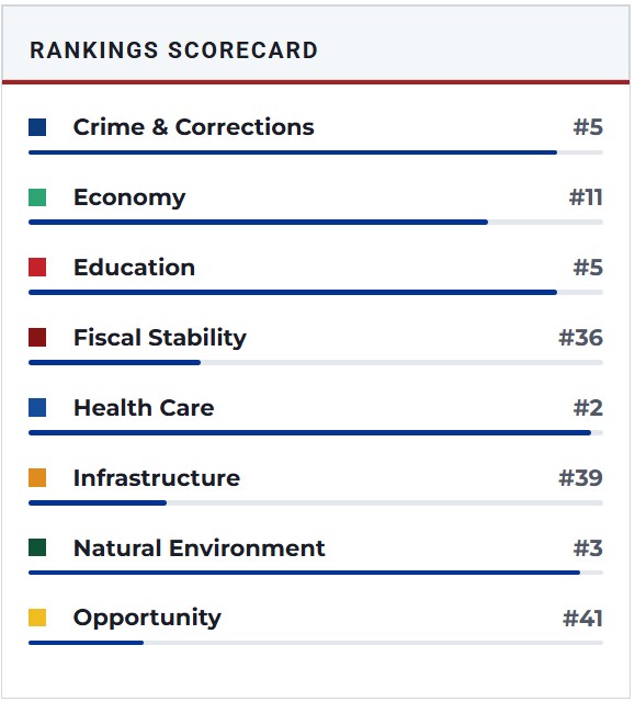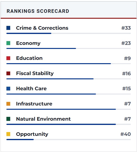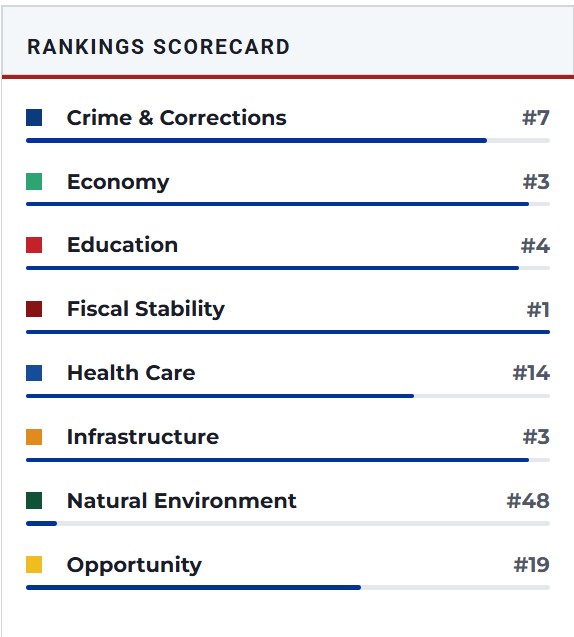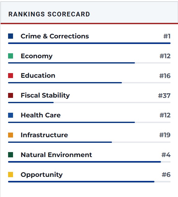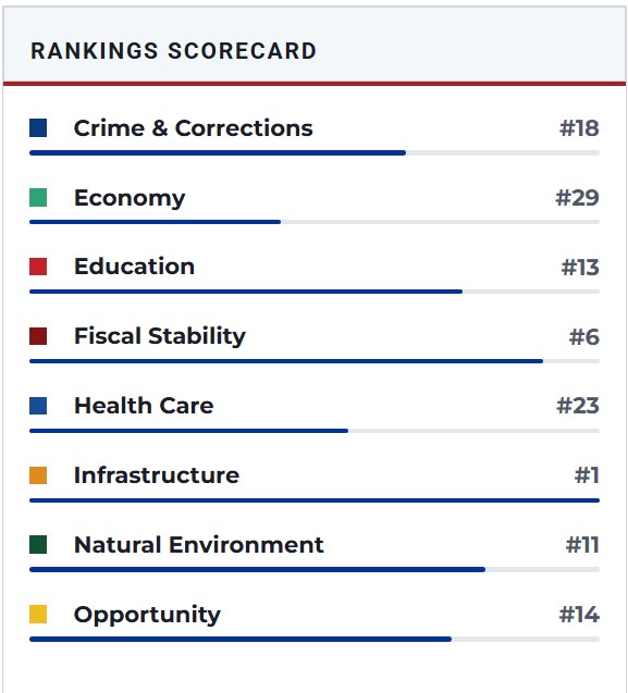 If you would like to see how all the other states rank and their breakdown of why their ranking status go to: Best States Rankings at U.S. News & World Report for an excellent, unbiased assessment. You might be surprised between what is hype and propaganda about states and what is actual fact(s).