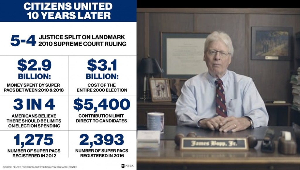Boy howdy, if that isn’t rich, superior, snub-your-nose, white-man arrogance, then I have land on the Moon to sell you. That is the most undemocratic, uncouth, audacious hubris stuff to say to a nation, his nation founded upon the People, the ordinary, hard working People of America who are not the upper 10% or 15% of the most wealthy in the nation. They are average Americans who absolutely have a voice, as equally as anyone else has a voice Of the People, By the People, and For the People whether they are filthy rich or not! Man, James Bopp, Jr. chaps my ass royally with that level of blatant pomposity! And readers, he is the reason Citizens United succeeded in 2010 and directly corrupted this supposedly fair democratic republic nation. No debate whatsoever; he and the ramrodded Supreme Court Justice appointments by the last six (6) Republican administrations going back to Richard Nixon to deliberately ideologically fix our highest court in the land.