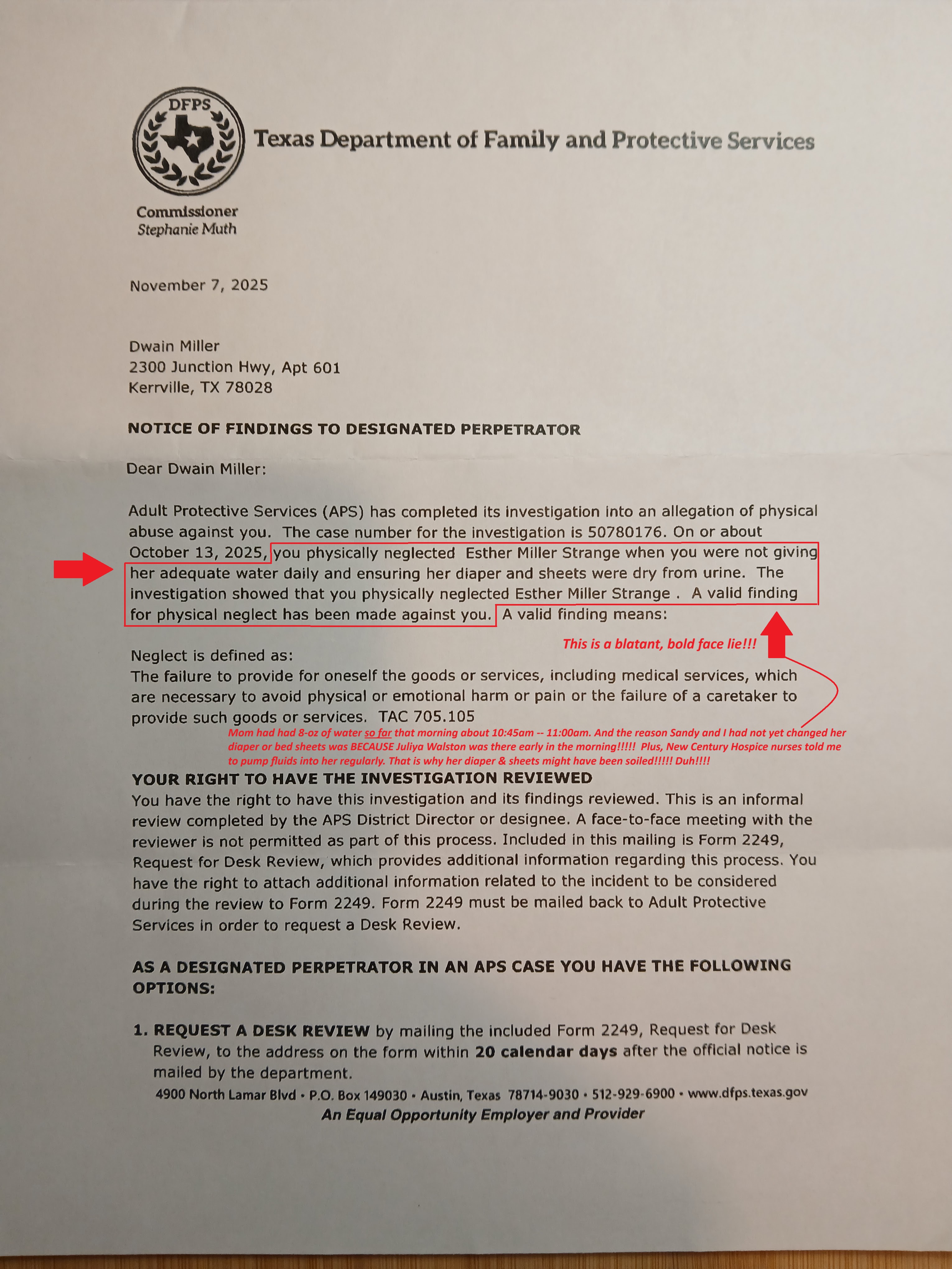 FACT: I took extremely good care of Mom between August 2021 until her death. Adult Protective Services of Texas, based out of San Antonio, Texas, see’s everything differently after just TWO 15-minute visits with Mom… when she couldn’t really talk coherently. In fact, most all of my lifetime friends said “Dwain, you have gone WAY BEYOND what most family members would ever do for their Mom and over 4-years and more.“