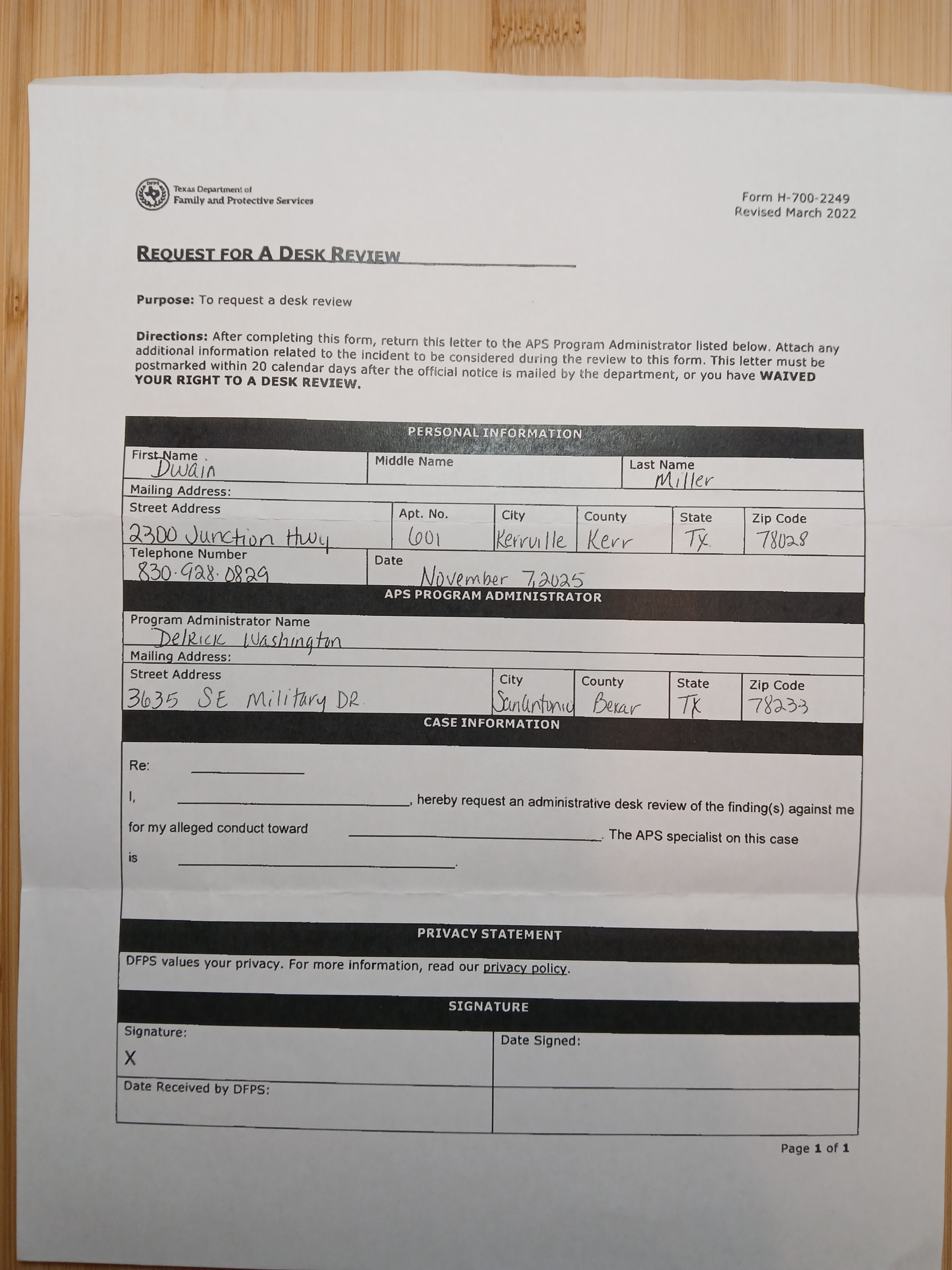 Now, this is what I received from the Texas Department of Family & Protective Services the other day: