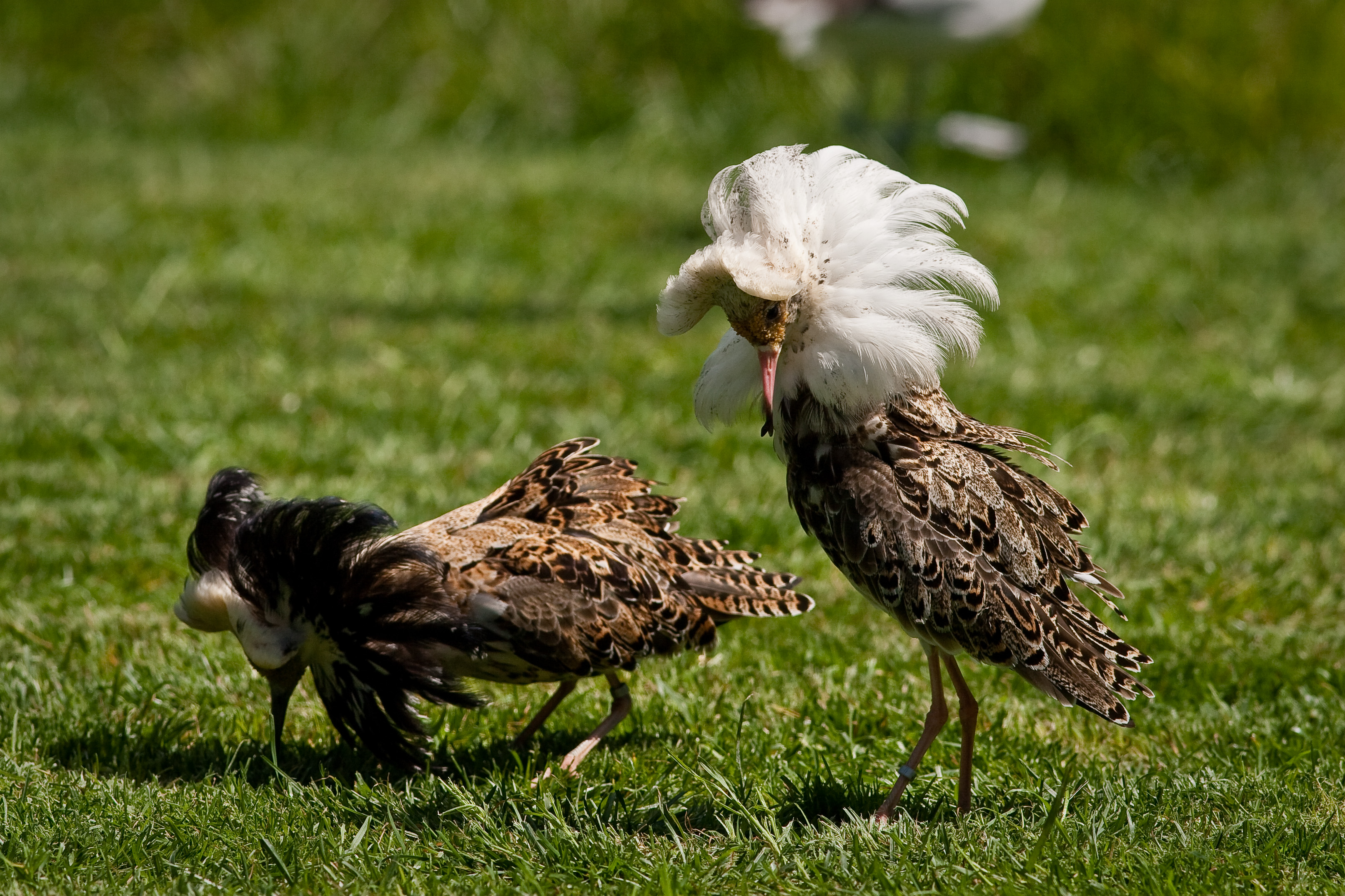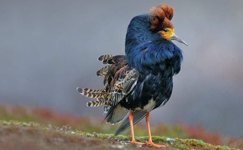 Most of the male ruffs gather among themselves, each breeding season, in great numbers displaying their flamboyant neck feathers as well as their physical prowess. These gatherings are called leks. The females browse around all the males, responding to the best ruffs. How? By bending over and presenting their genitals in an unabashed, fairly unambiguous posture stating they are willing to mate.