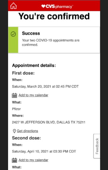I am very happy to report that I finally qualify for my COVID-19 vaccines! My first (Pfizer) dose is scheduled for this Saturday, March 20 and my second dose Saturday, April 10. I am thrilled, to say the least!