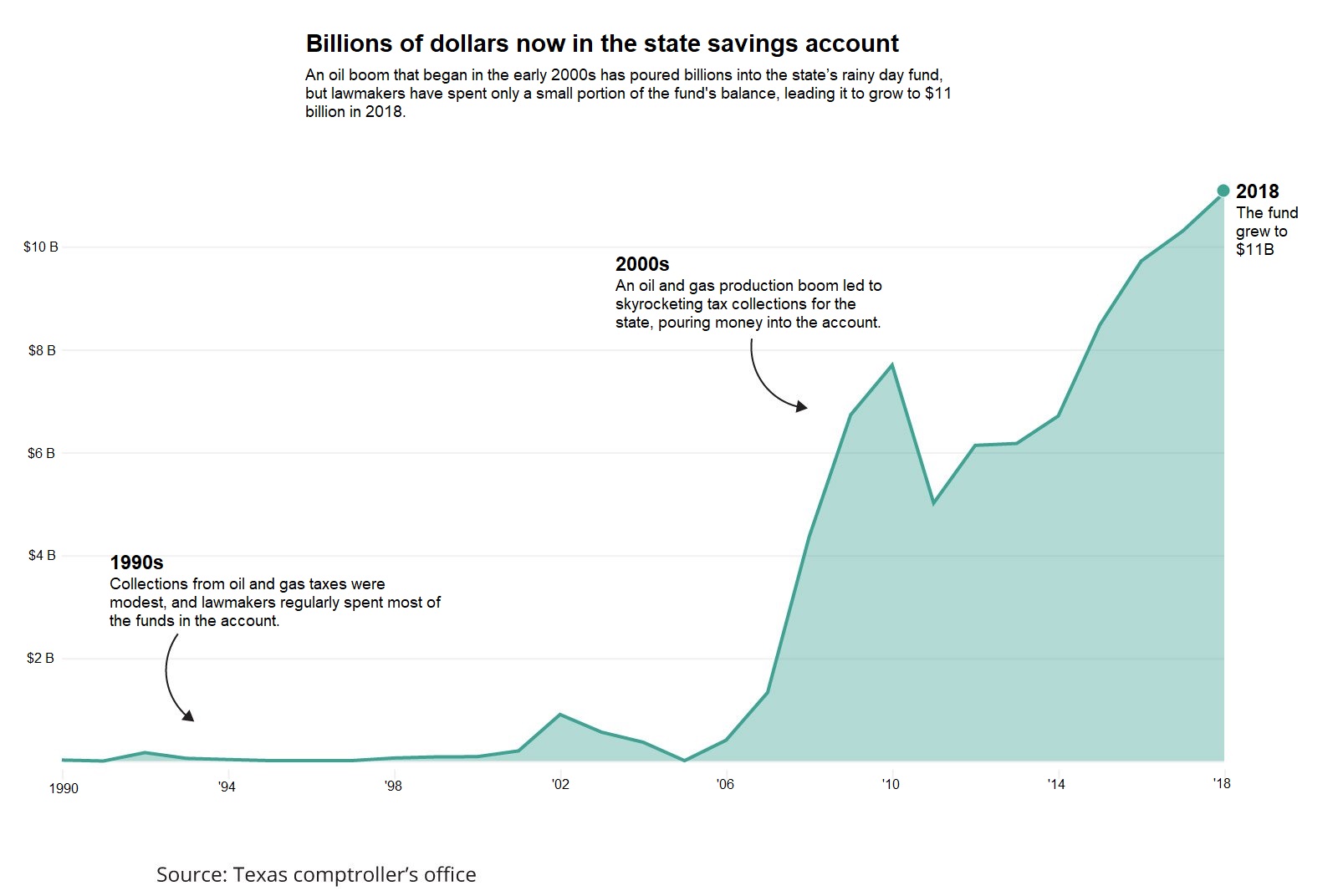 Since 1995 (or longer) none of the above two ranking systems and their metrics have significantly changed for the better. In stark contrast, however, what has changed enormously for Texas is indeed its fiscal stability/growth over the last 35-years due to: 1) homebased, mega corporate revenues/profits, 2) sharp rises in K–12 charter and public school enrollments, and 3) the state’s famed “Rainy Day Fund“ (graph above) with a 2020 fiscal balance of $10.7 billion. The fund has never seen a traumatic downward fiscal turn since the 2000’s. They were short, minor turns. Yet, in the above two statistical rankings and tables for quality-of-life measurements it is irrefutable that Texas has never been better than subpar to inadequate for over 25-years. This is an odd dichotomy, a strange ongoing 10+ year enigma given the state’s outstanding fiscal stability.